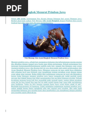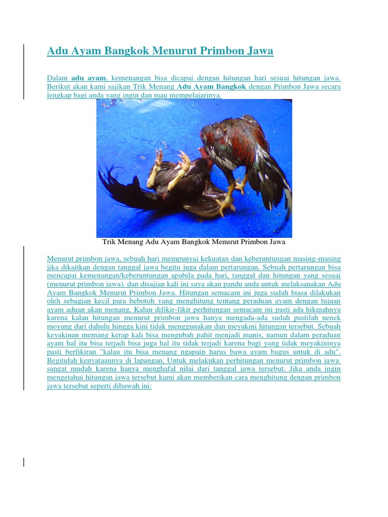 29.primbon haid datang bulan 30.primbon memberi nama bayi. Sebenarnya yang paling menentukan dalam menjadikan ayam bangkok berkualitas juara adalah merawat dan melatihnya dengan rutin, teratur disertai pemberian pakan dengan asupan gizi yang seimbang,. Tafsir mimpi melihat orang adu ayam. Cerita, mengenai ayam jago ternyata tidak berhenti di tempat latihan saja. Selain itu, terdapat panduan hari baik adu ayam agar beruntung meraih kemenangan disesuaikan dengan hitungan hari tanggal jawa.